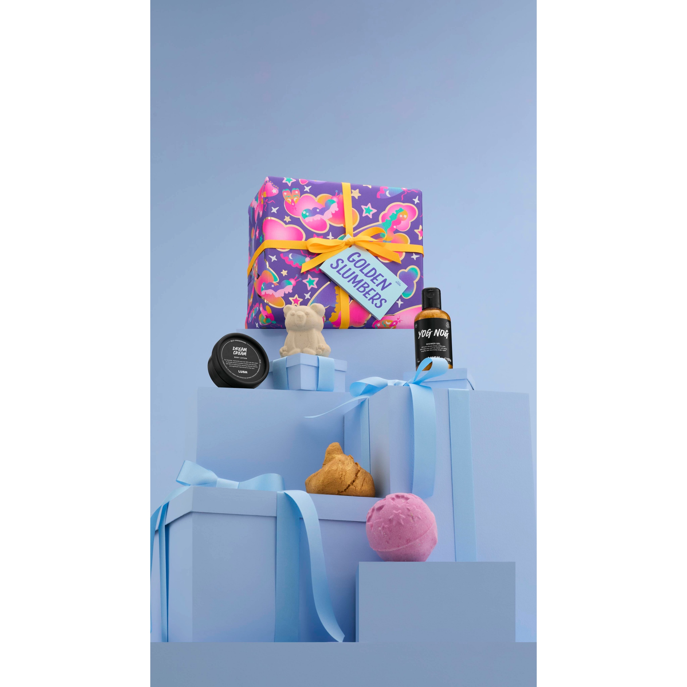 This snuggly design was dreamt up by Lush Gift Designer, Grace Cole. “I wanted this gift to feel like a dream with glow worms and butterflies drifting through the clouds and stars. I wanted it to reflect the goodies inside such as the lavender for a cosy, magical wind-down.”