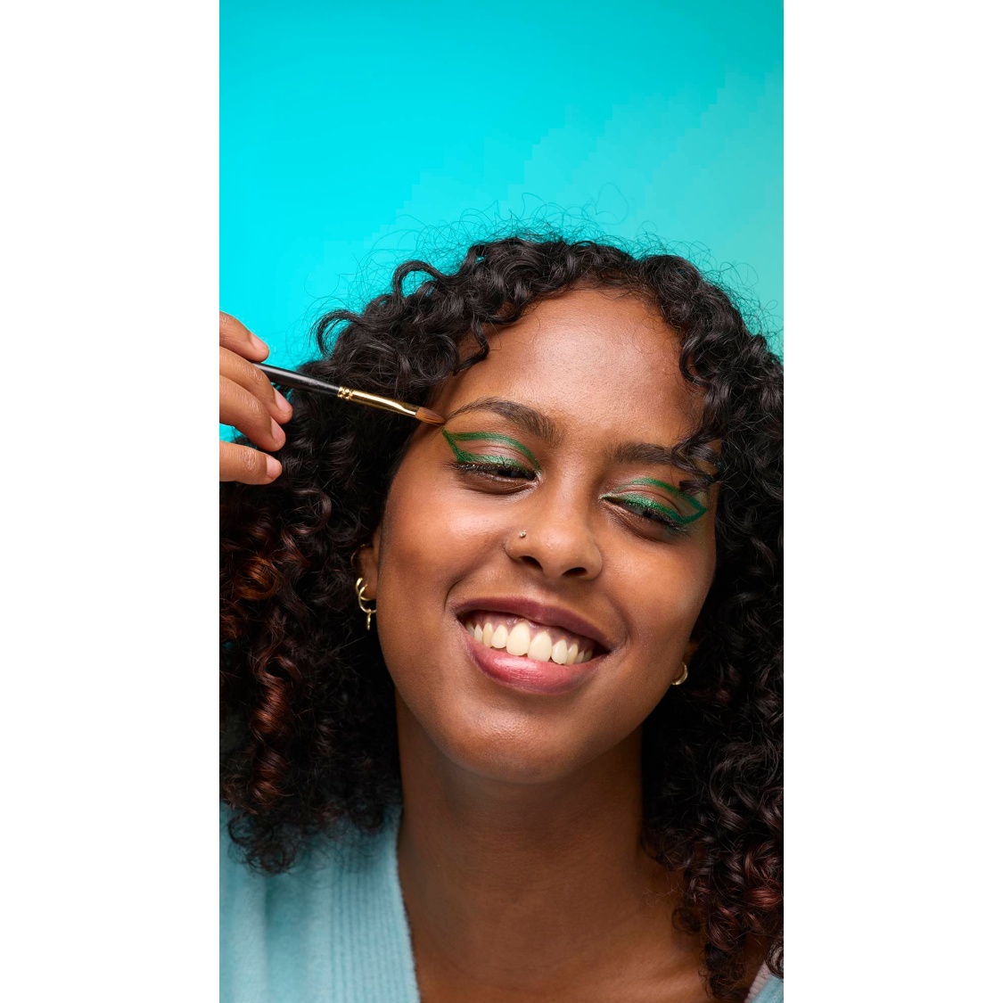 Success – wear it! This silver shade will define your eyes and your intentions. Whether you’re into bold, silver, winged eyeliner, or prefer to add a little subtle definition, this shining liquid liner can do both! Just be sure to apply with our handmade Wing It and Get In There brushes, making application easy! Looking to level up your eye look? All of our shades can also be used alongside our Hey Big Blender brush for a statement wash of colour all over the lid.