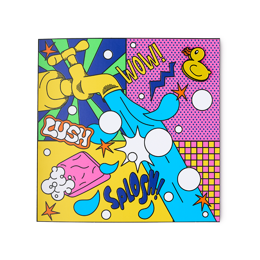“A design where Lush meets pop art in a bold, joyful collision of colour, pattern, and play! A celebration of bathing as vibrant self-expression through bold blocks of electric colour and eye-popping patterns colliding with juicy halftone patterns. A riot of neon nostalgia and joyful illustrations that turn every splash, soak, scrub into a pop-powered masterpiece.” – Lush creatives
